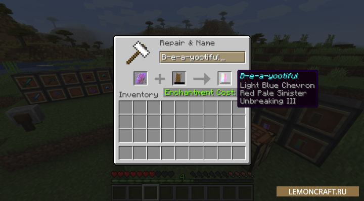 Мод на сломанные предметы Ruined Equipment делает предметы имеющие нулевую прочность разрушенными или дает вам возможность отремонтировать их. Так же вы сможете увековечить данные предметы любым удобным вам способом.